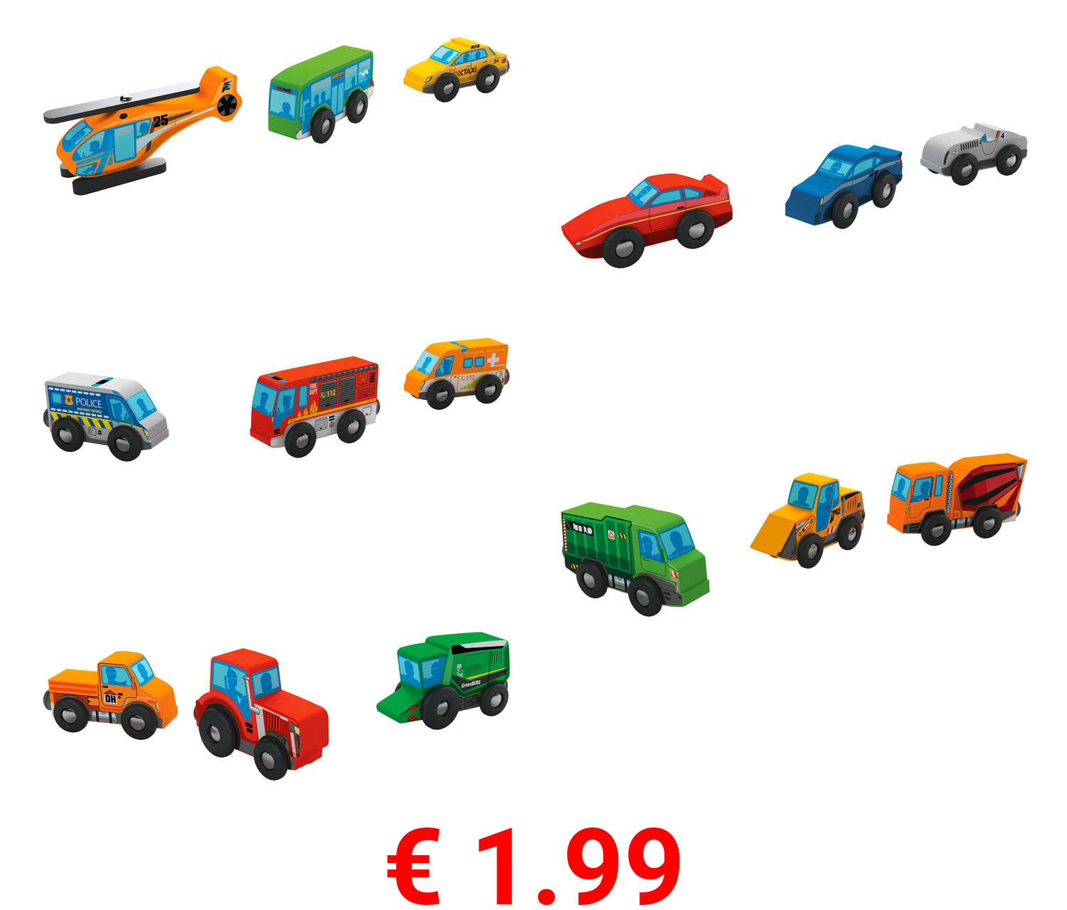 € 1.99 Playtive Holz Fahrzeug-Sets, 3-teilig, Modell 2021