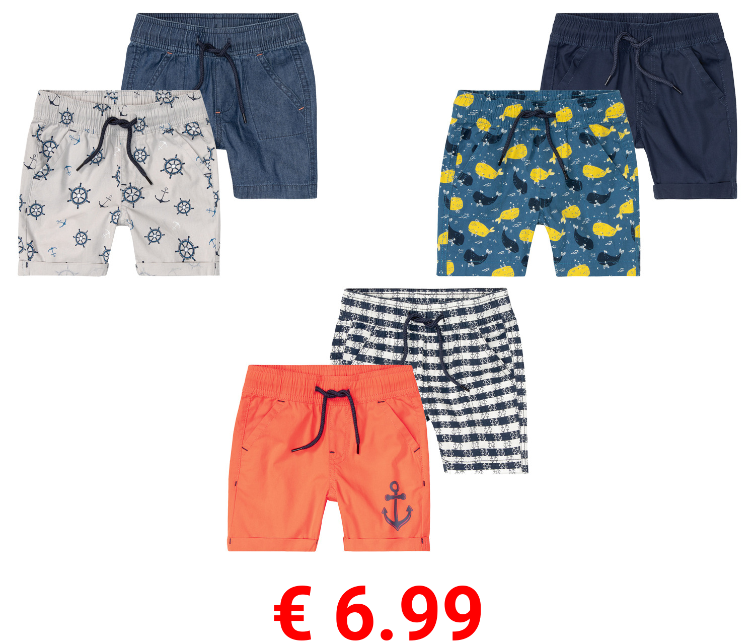 € 2.99 lupilu® Baby Jungen Shorts, 2 Stück, mit Bio-Baumwolle