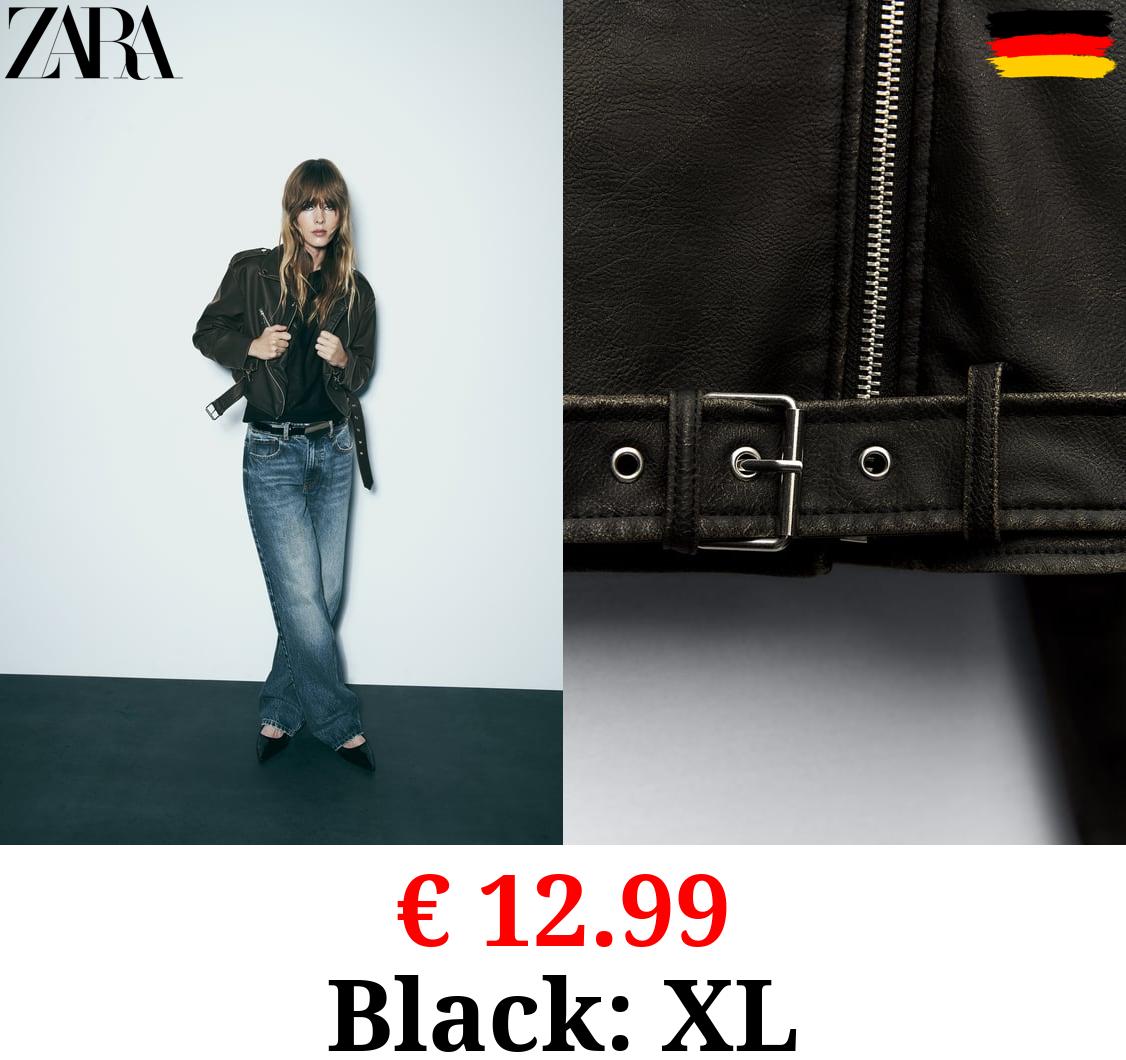 € 12.99 WORN EFFECT CROPPED LEATHER EFFECT BIKER JACKET