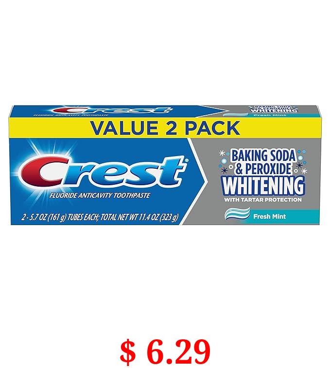 $ 6.29 Crest Cavity & Tartar Protection Toothpaste, Whitening Baking Soda & Peroxide, 5.7 oz, Pack of 2