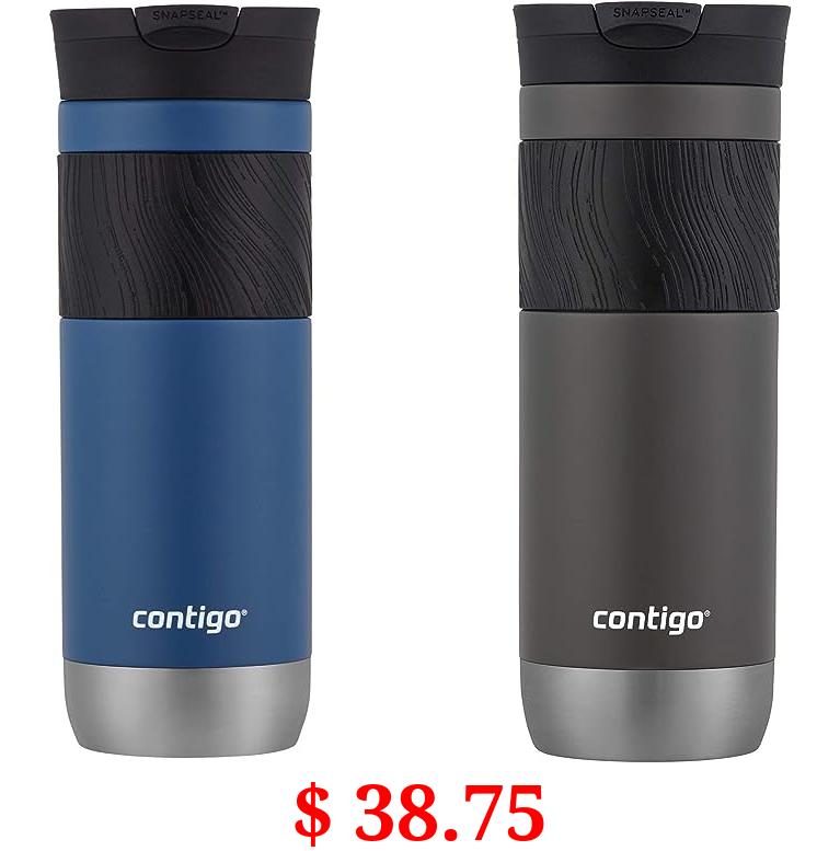 $ 38.75 Contigo Byron Vacuum-Insulated Stainless Steel Travel Mug with Leak-Proof Lid, Reusable Coffee Cup or Water Bottle, BPA-Free, Keeps Drinks Hot or Cold for Hours, 20oz 2-Pack, Sake & Blue Corn
