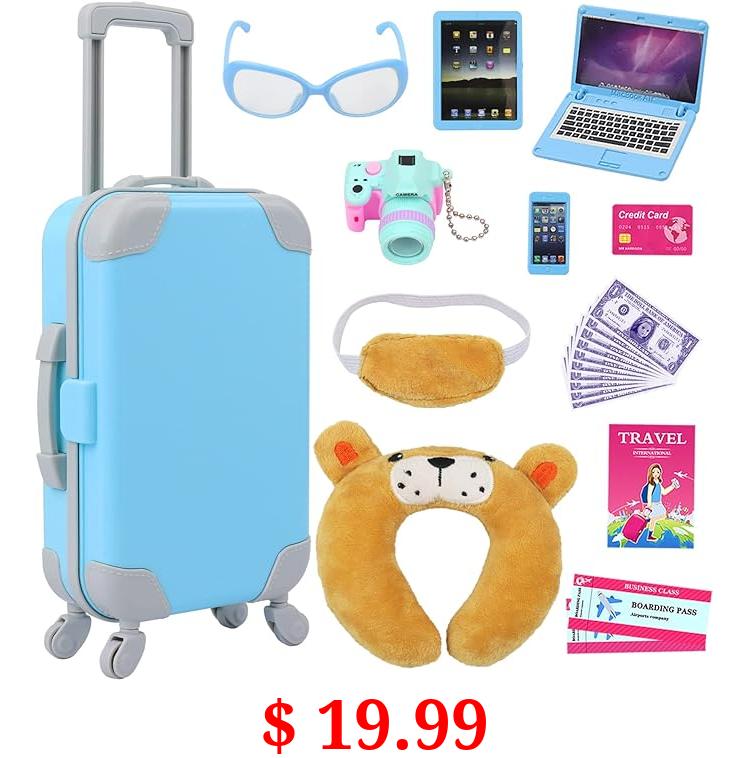 $ 19.99 ZITA ELEMENT 22 Pcs 18 Inch Boy Doll Clothes Suitcase Set for 19 Inch Boy Doll Accessories Travel Carrier Storage, Including Suitcase Pillow Blindfold Sunglasses Camera Computer