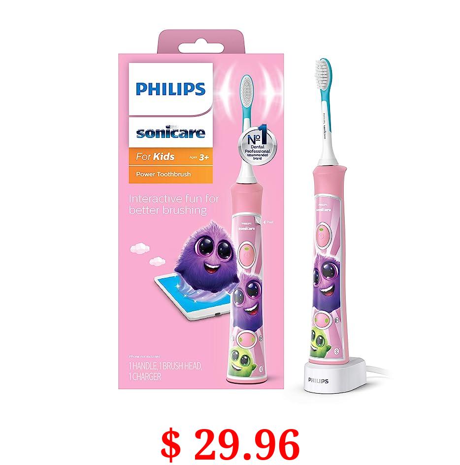 $ 29.96 Philips Sonicare for Kids 3+ Bluetooth Connected Rechargeable Electric Power Toothbrush, Interactive for Better Brushing, Pink, HX6351/41
