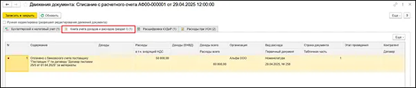 расходы в 1с