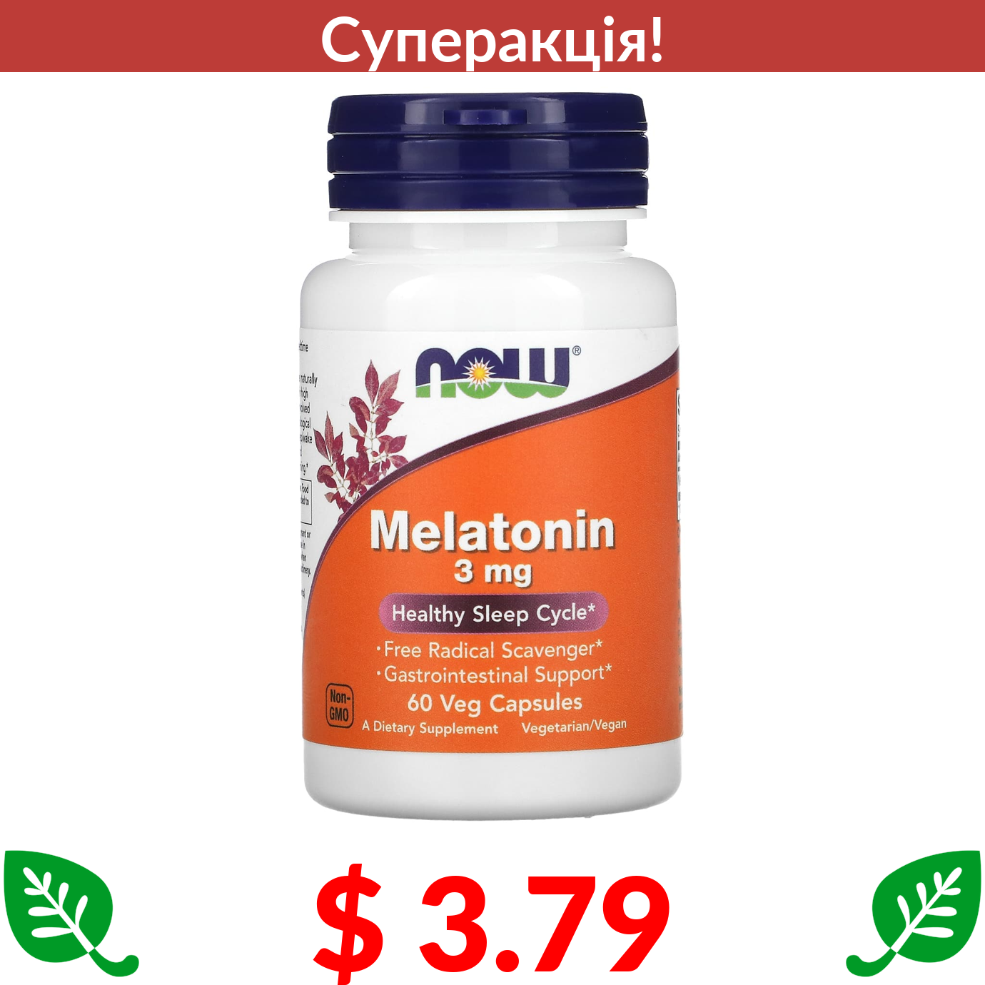 $ 3.79 Now Foods, мелатонін, 3 мг, 60 вегетаріанських капсул