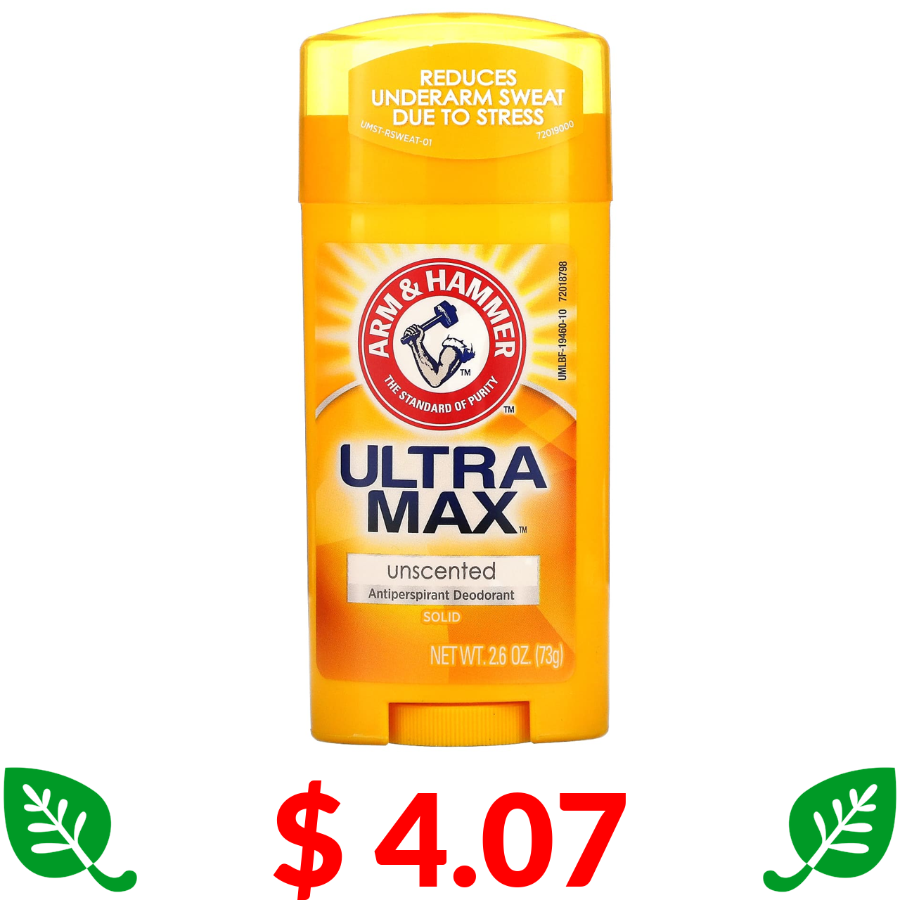 $ 4.07 Arm & Hammer, UltraMax, твердий дезодорант-антиперспірант, без запаху, 73 г (2,6 унції)