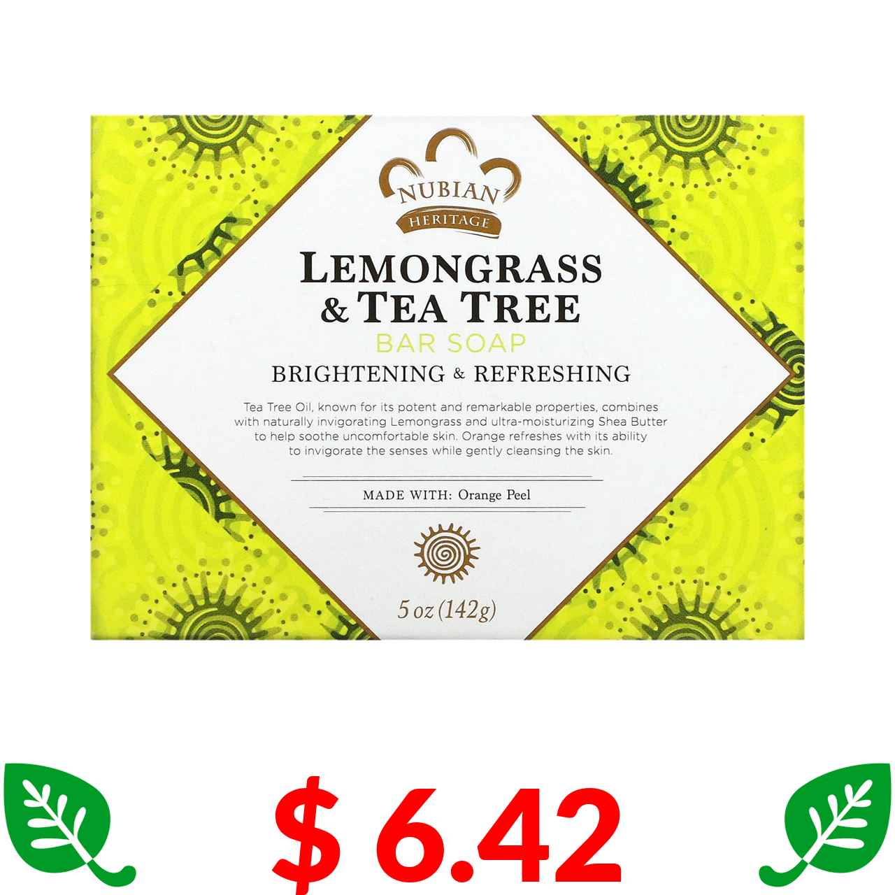 $ 6.42 Nubian Heritage, мило з лемонграсом і чайним деревом, 142 г (5 унцій)