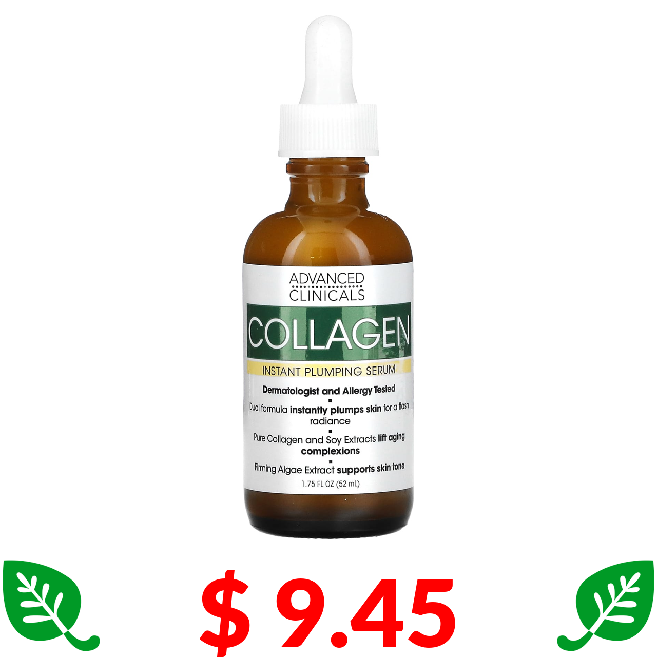 $ 9.45 Advanced Clinicals, колаген, миттєва сироватка пружності шкіри, 52 мл (1,75 рідк. унції))