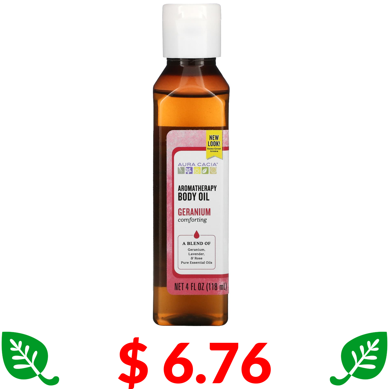 $ 6.76 Aura Cacia, Ароматерапевтична олія для тіла, заспокійлива герань, 4 рідких унції (118 мл)