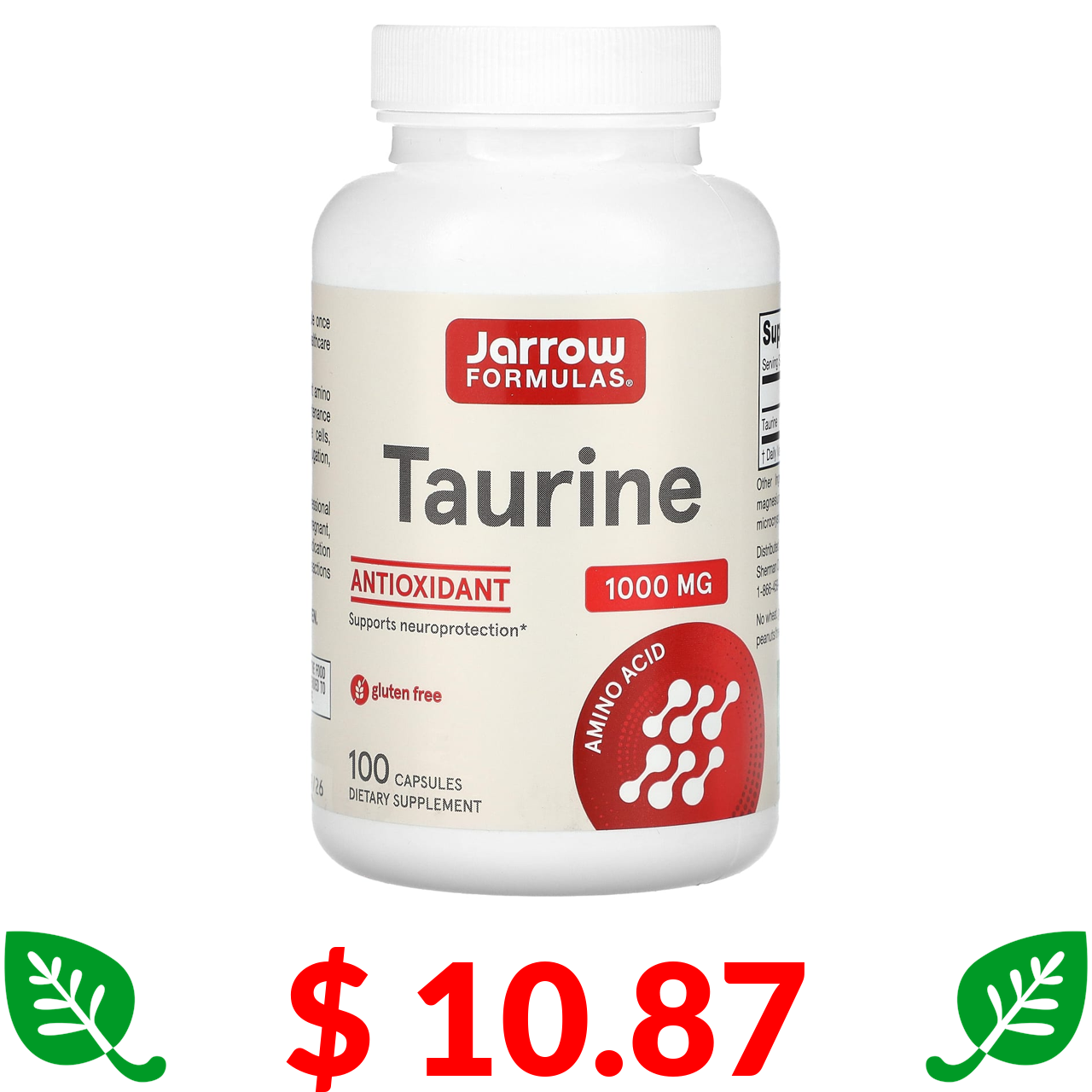 $ 10.87 Jarrow Formulas, таурин, 1000 мг, 100 капсул