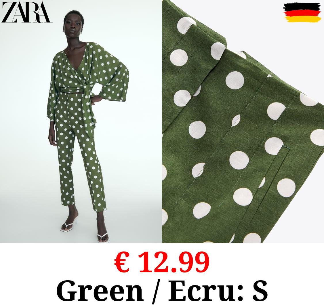 € 12.99 LINEN BLEND HIGH-WAIST POLKA DOT TROUSERS