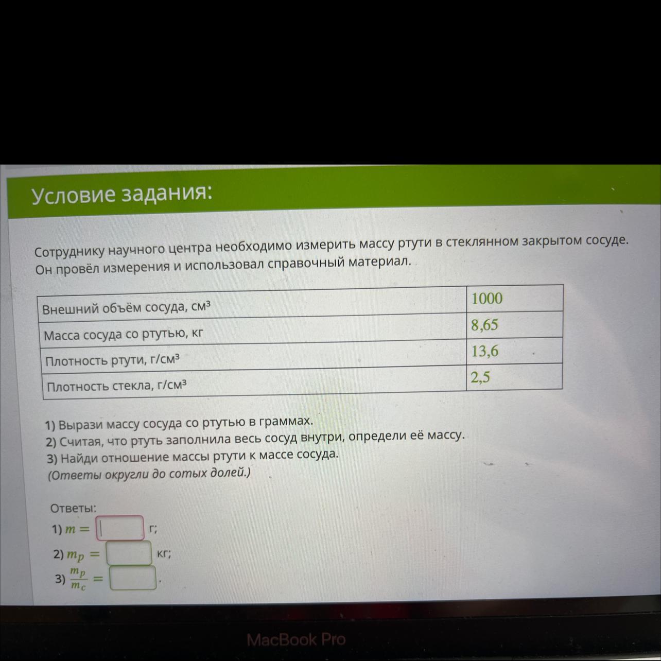 Определить массу ртути в сосуде 119 фото