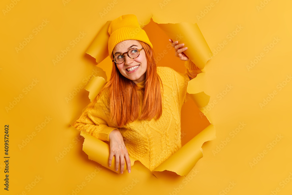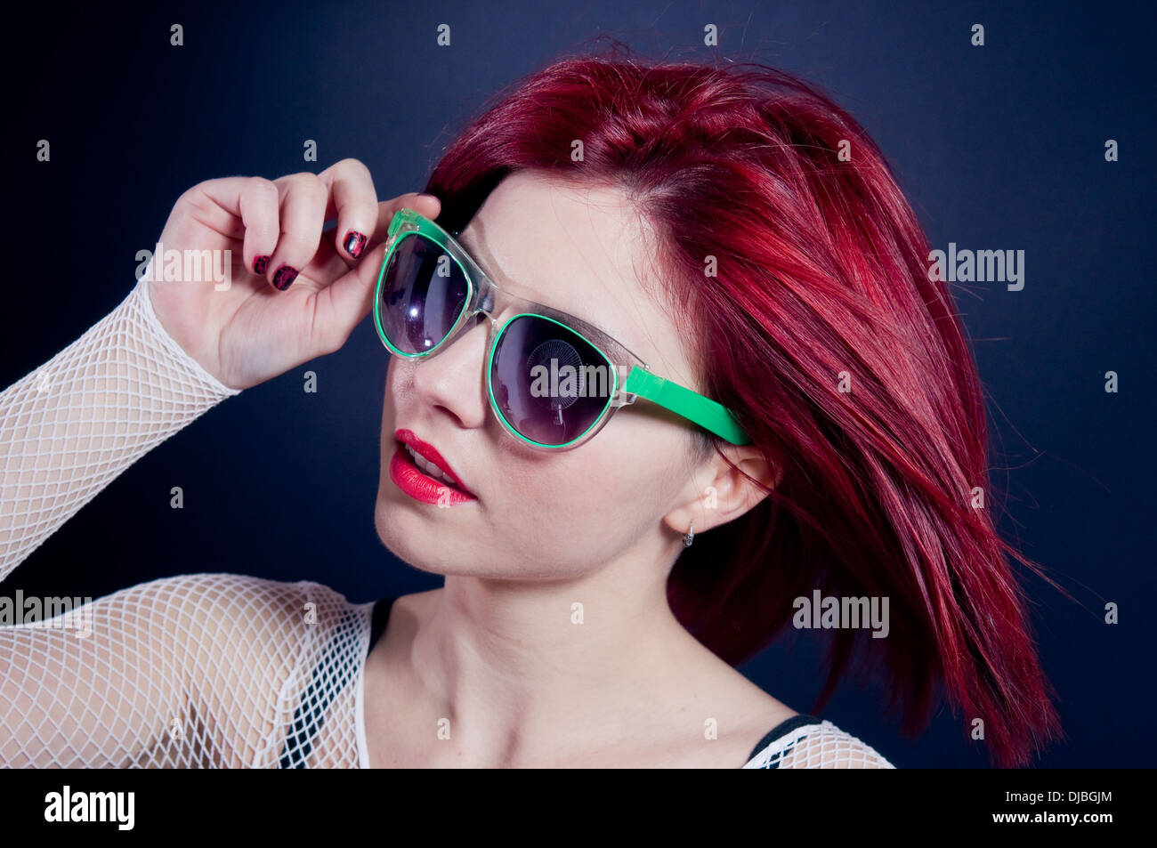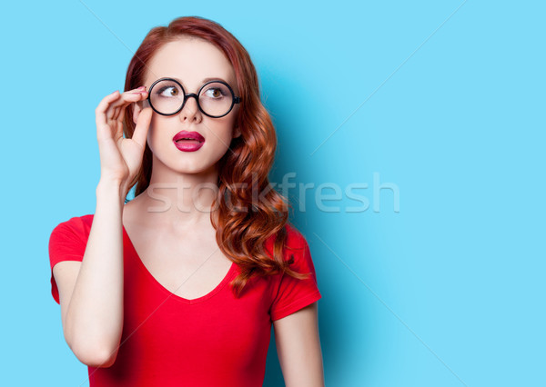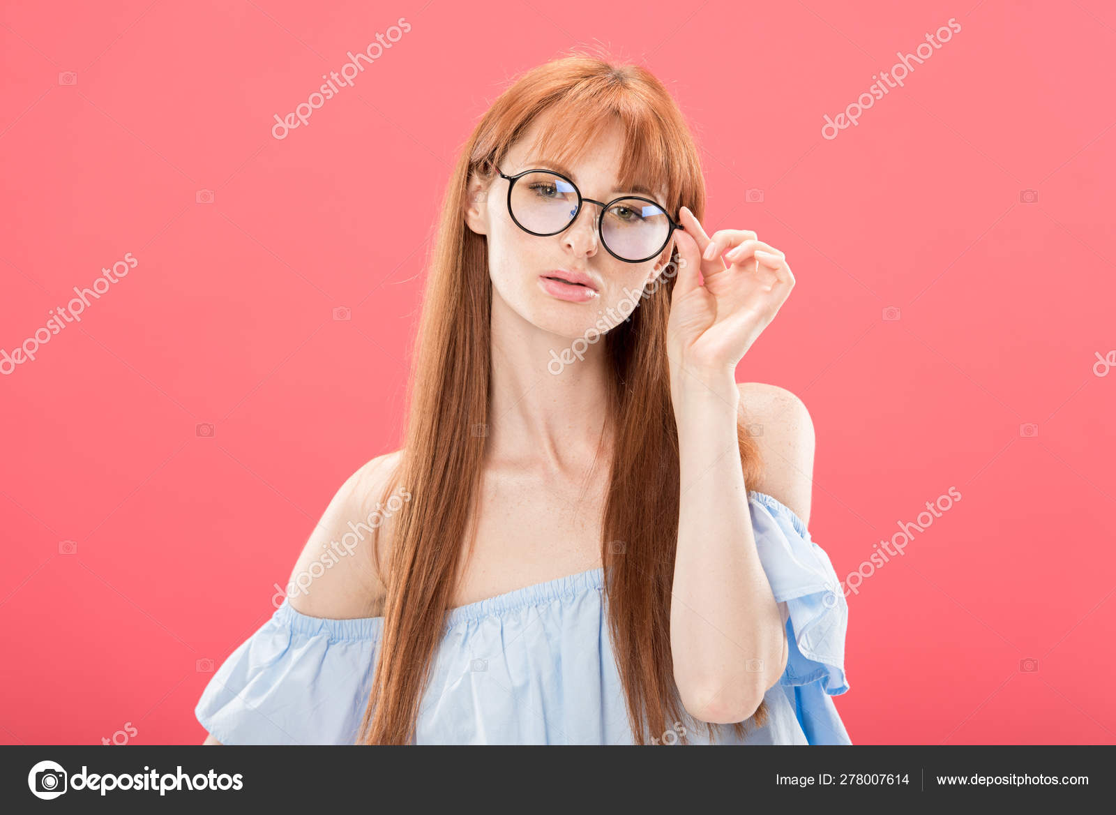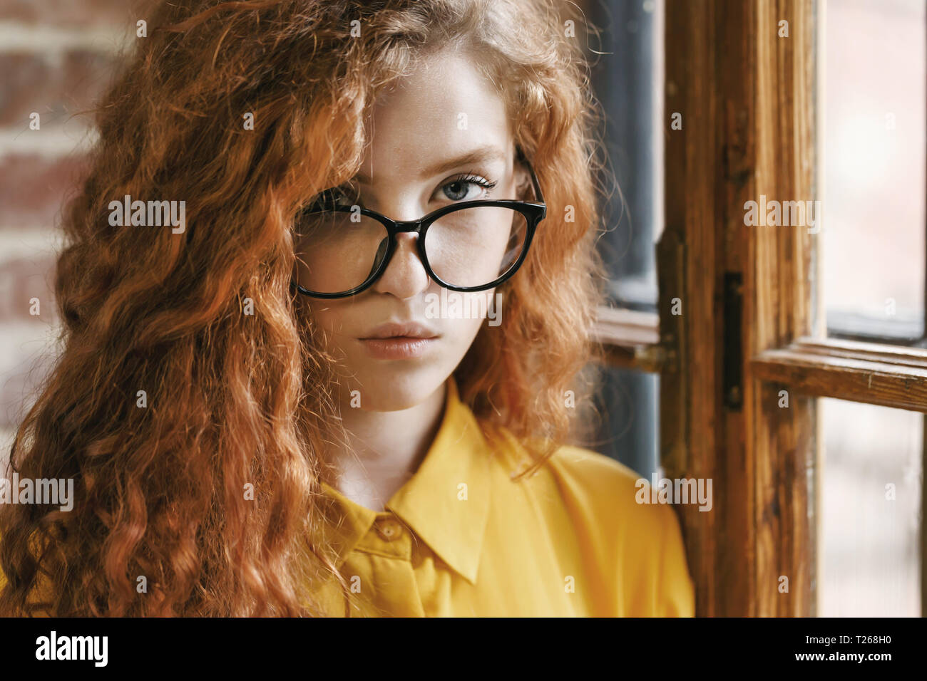 redhead with glasses playing around