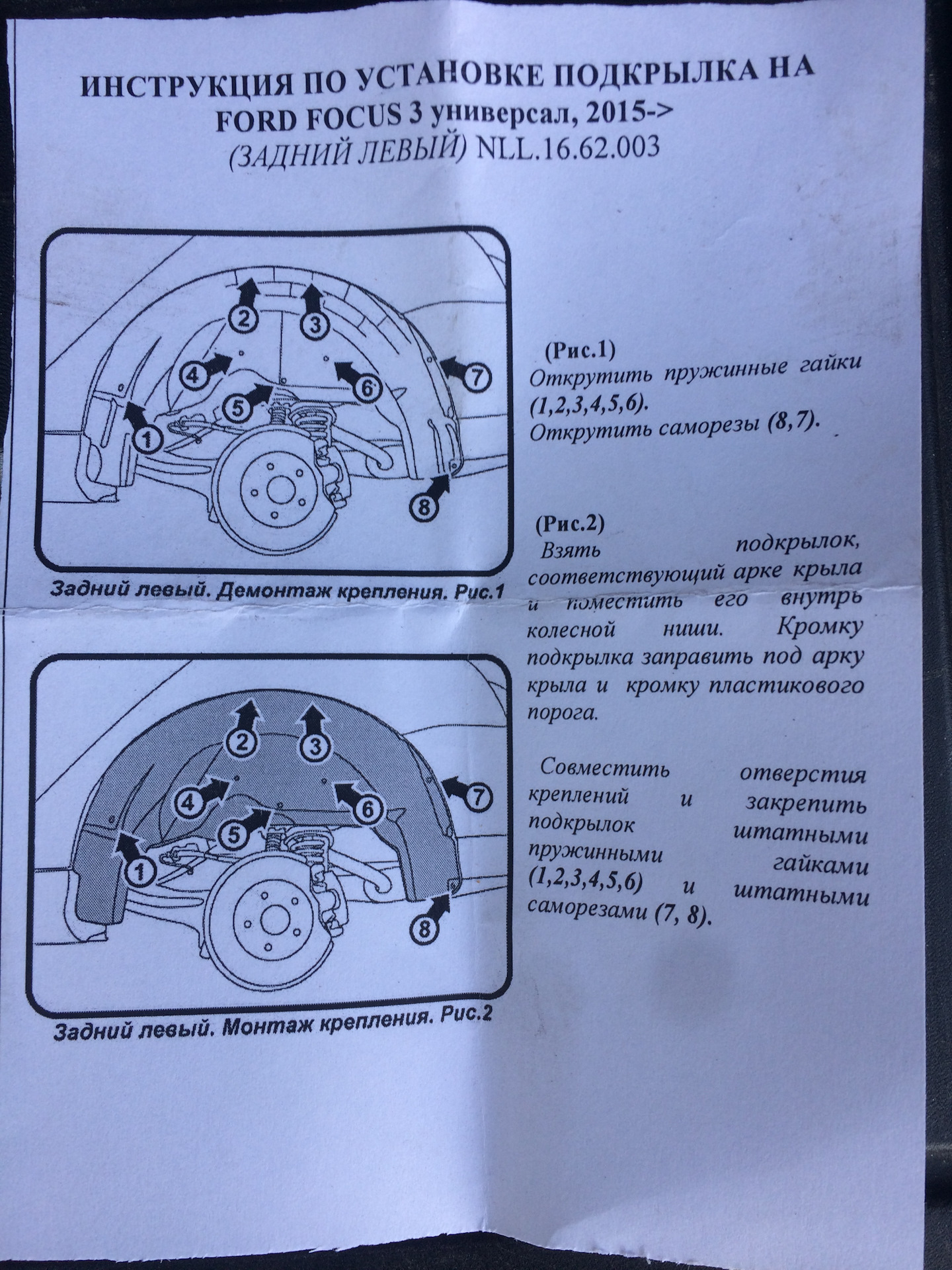 репление подкрылков фокус 2