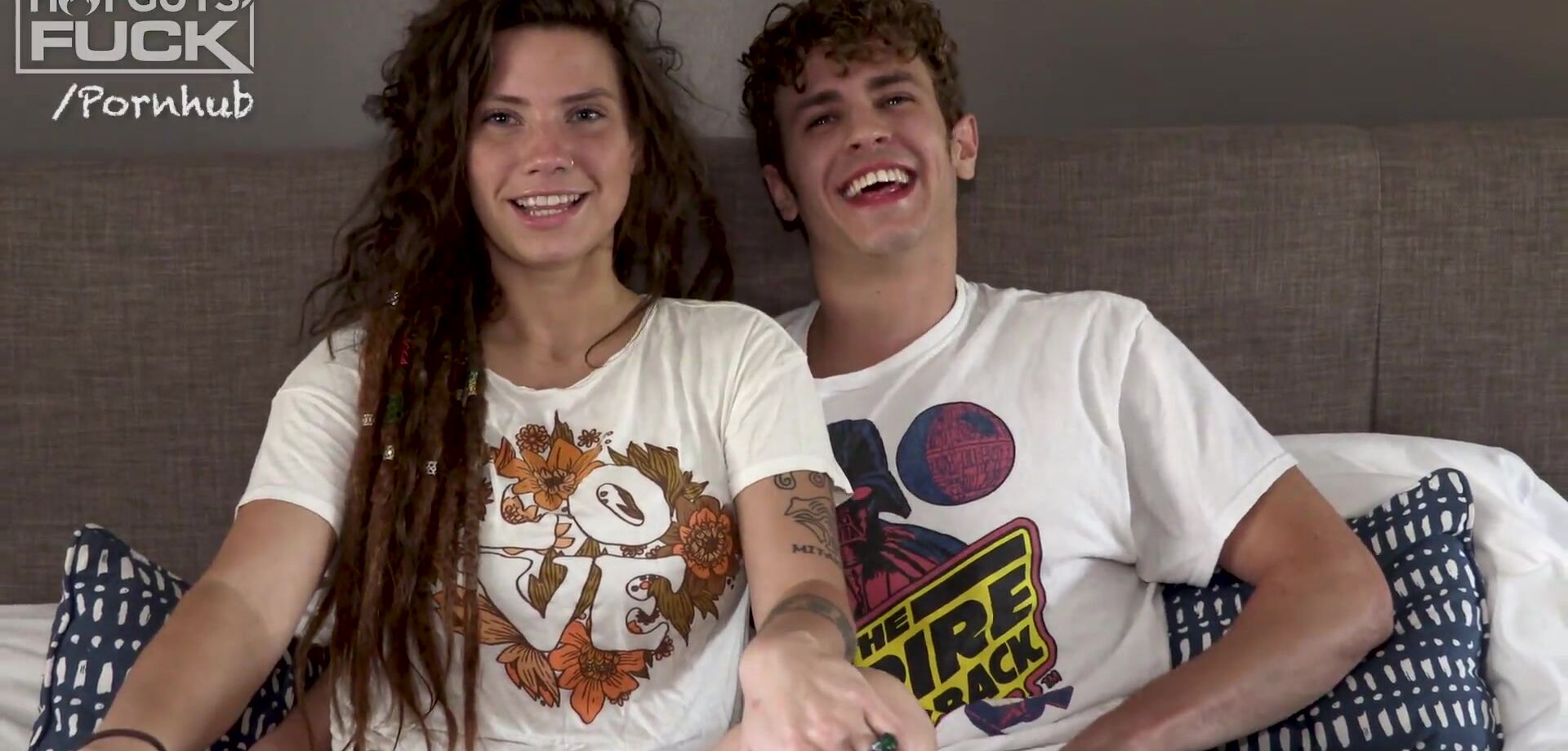 Nude couple having sex with girl on top