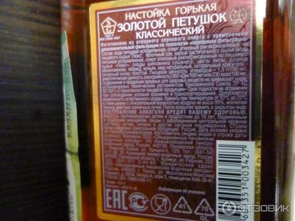 Горькая настойка петушок 89 фото