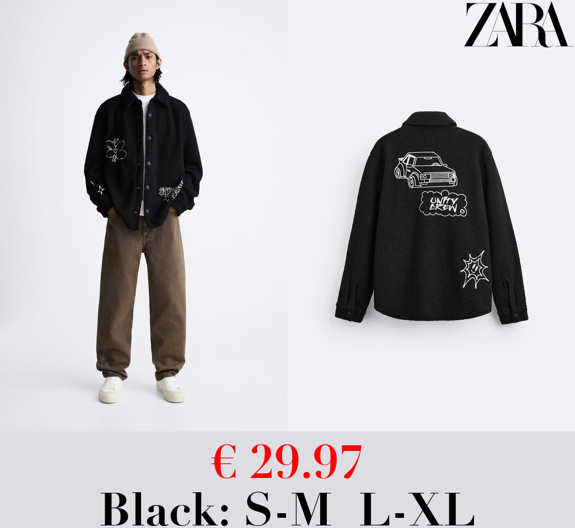 € 29.97 EMBROIDERED FAUX SHEARLING OVERSHIRT
