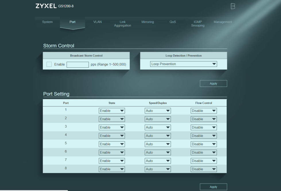 ройка коммутатора zyxel
