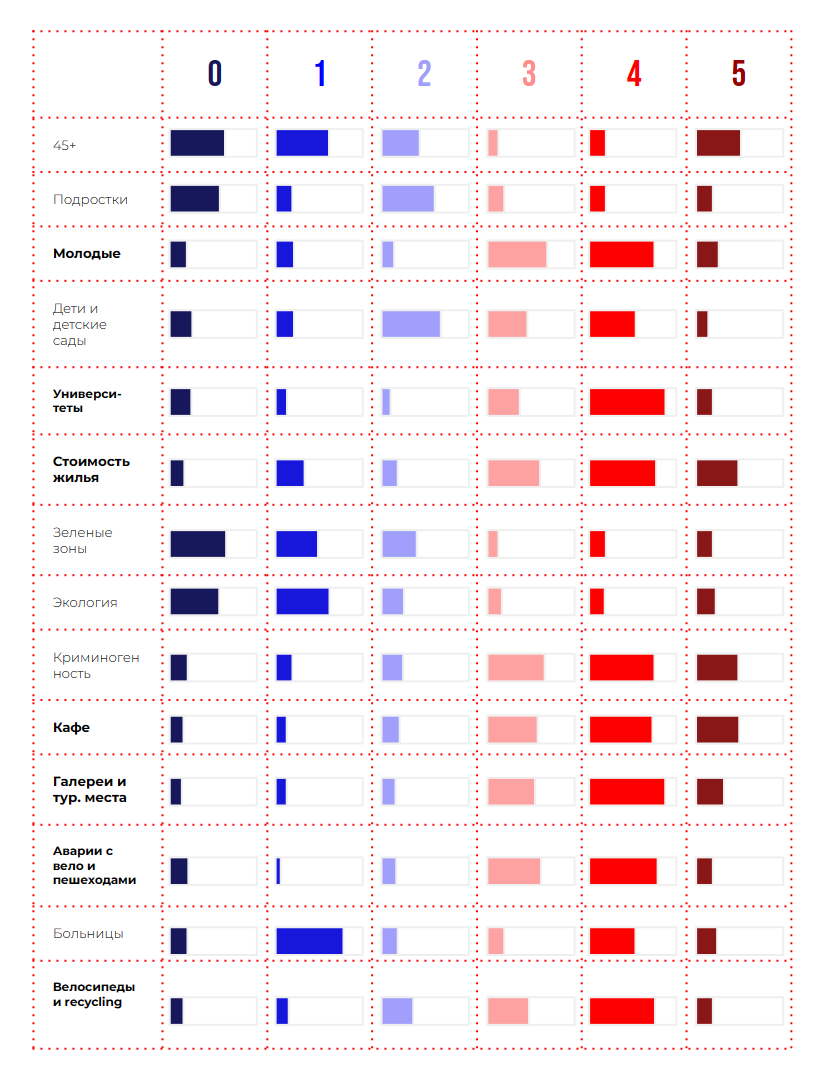 3. Обилие кафе, туристических мест, точек переработки отходов, средний житель молодого возраста, высокая стоимость жилья, но повышенный уровень криминогенности и плохая экология.