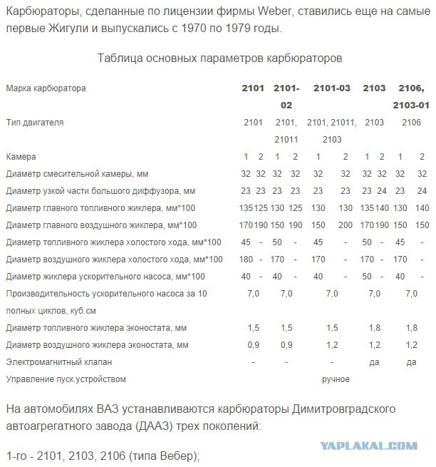 ры карбюратора 2101