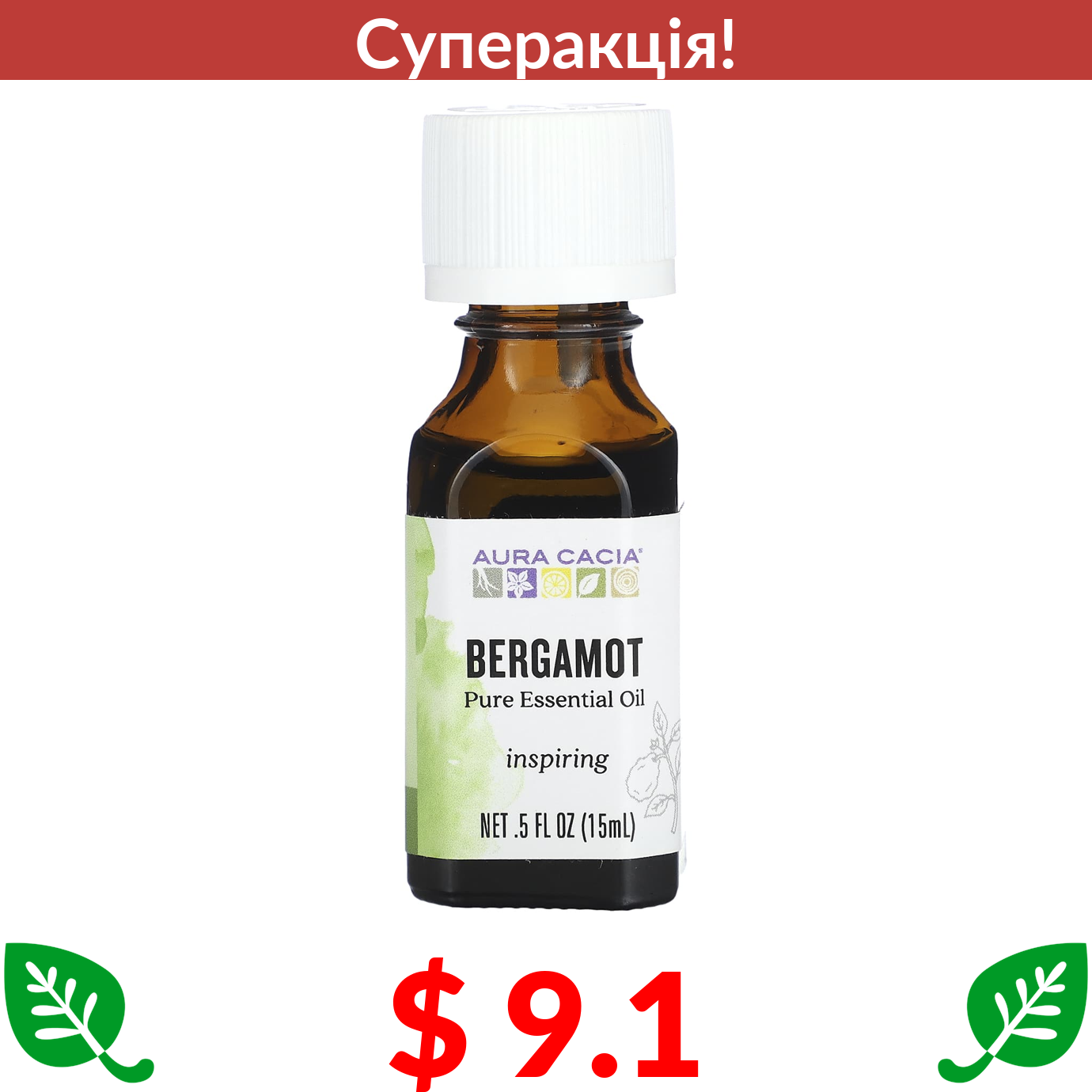 $ 9.1 Aura Cacia, 100% Pure Essential Oil, Bergamot, .5 fl oz (15 ml)