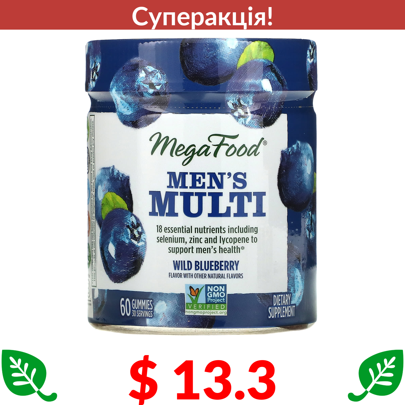 $ 13.3 MegaFood, Чоловічий мульти, дика чорниця, 60 цукерок