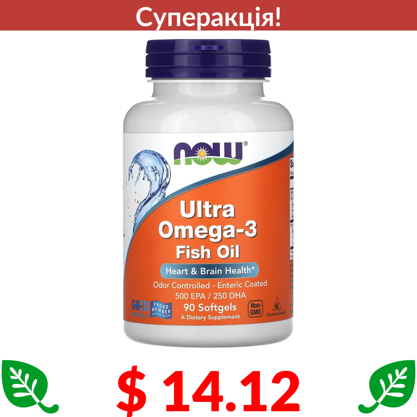 $ 14.12 Now Foods, риб’ячий жир із ультраомега-3, 90 капсул