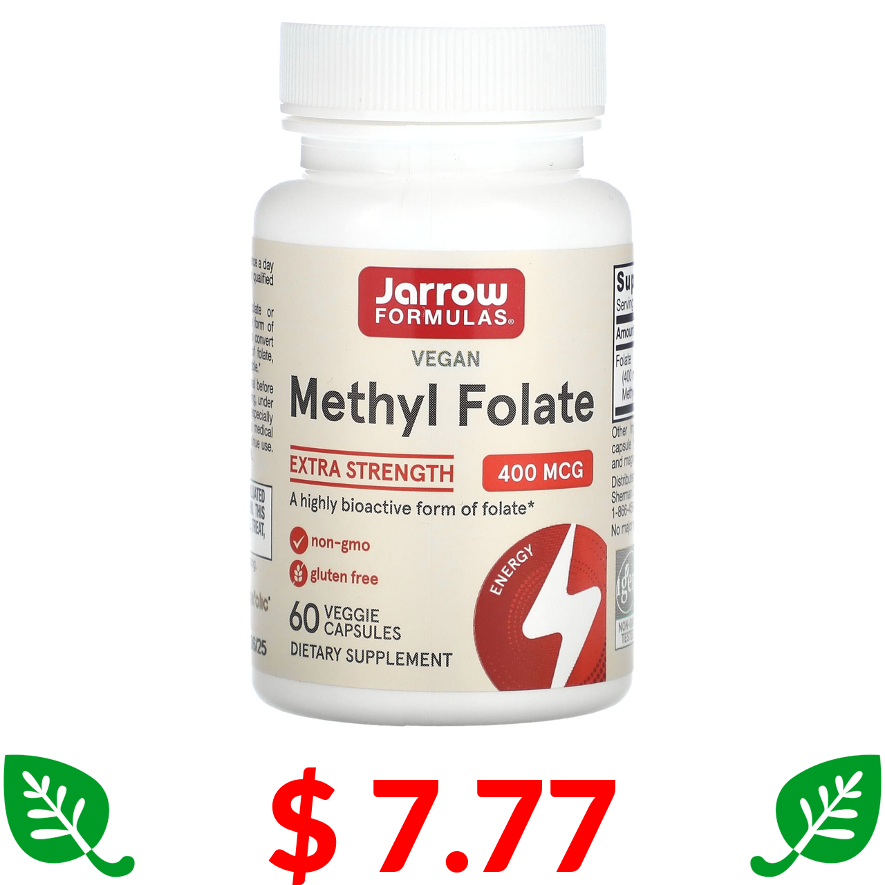 $ 7.77 Jarrow Formulas, метилфолат, посиленої дії, 400 мкг, 60 рослинних капсул