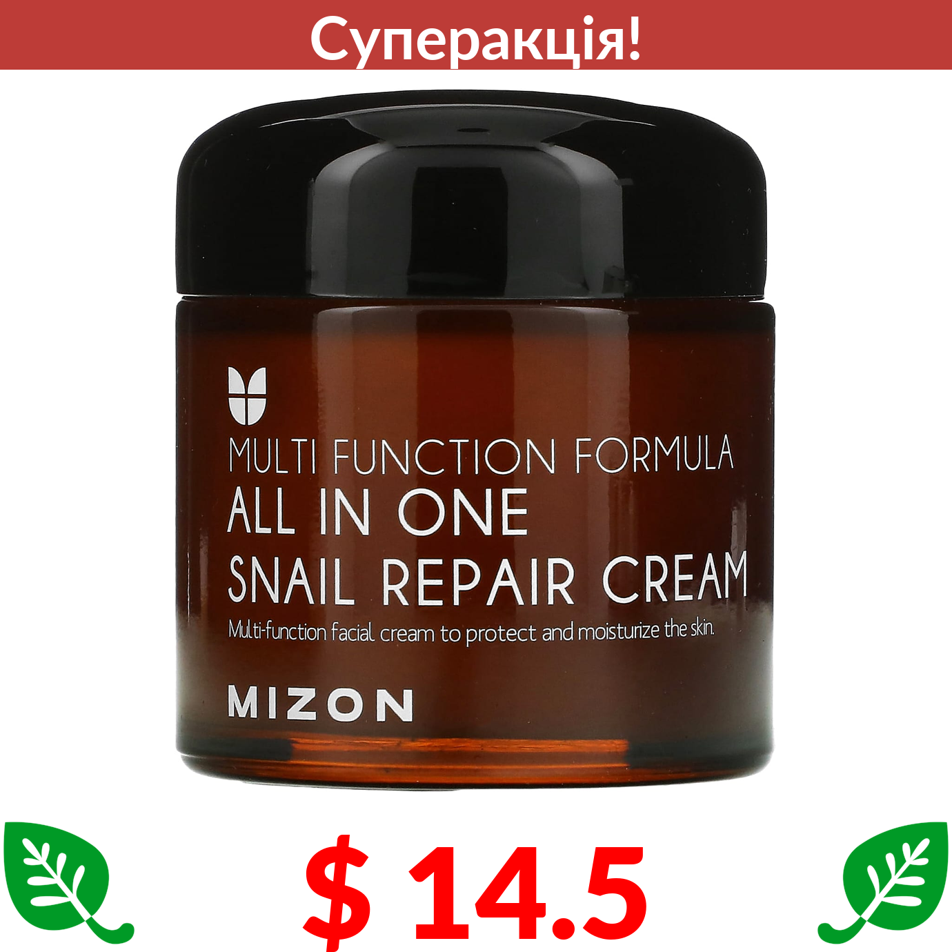 $ 14.5 Mizon, універсальний відновлювальний крем із муцином равлика, 75 мл (2,53 рідк. унції)
