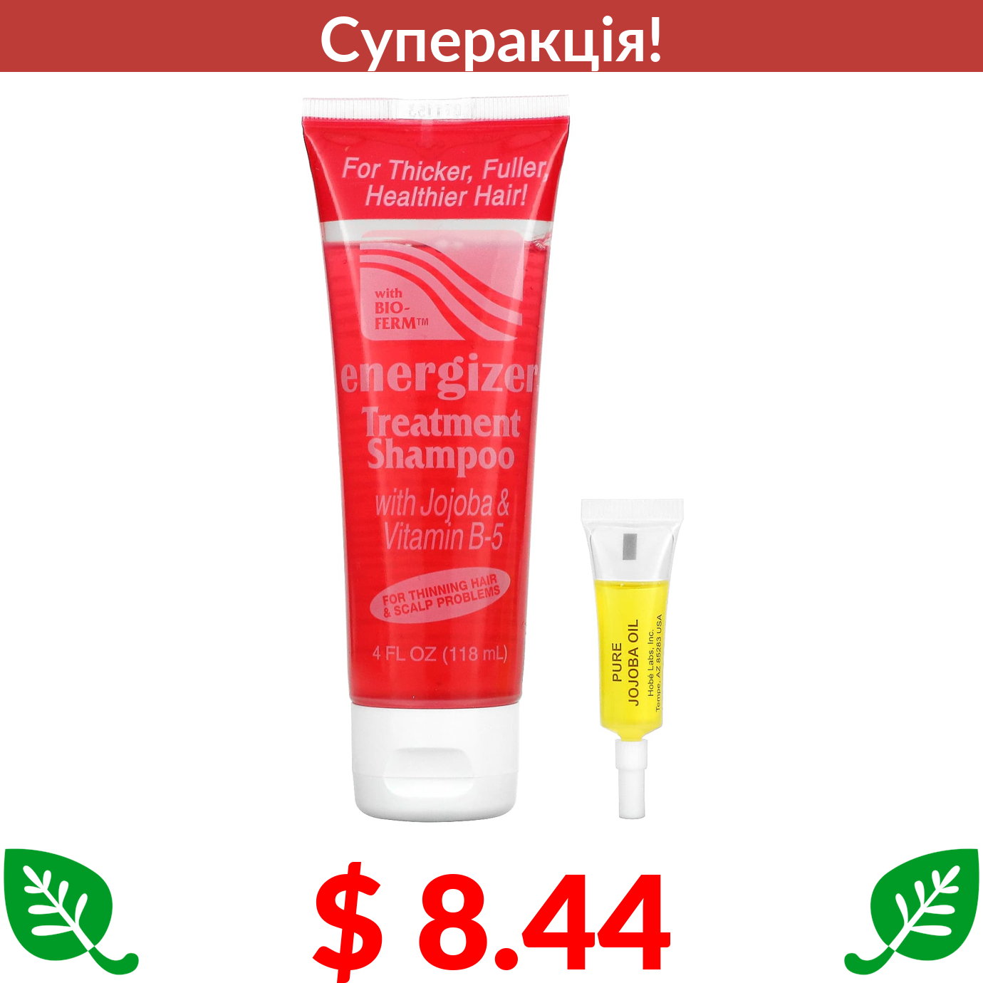 $ 8.44 Hobe Labs, Energizer, лікувальний шампунь із жожоба та вітаміном B5, 118 мл (4 рідк. унції)