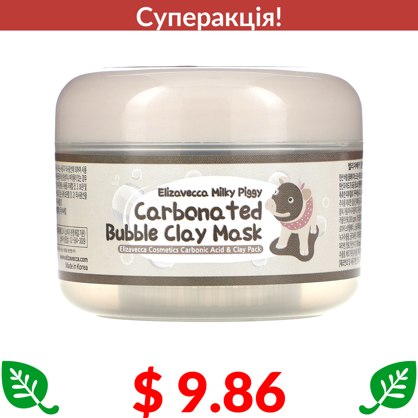 $ 9.86 Elizavecca, Milky Piggy, карбонізована глиняно-бульбашкова маска, 100 г