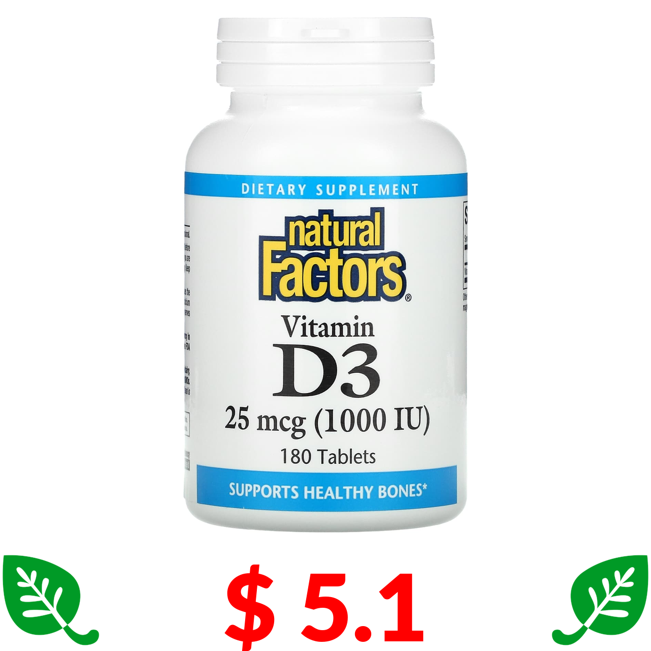$ 5.1 Natural Factors, Vitamin D3, 25 mcg (1,000 IU), 180 Tablets