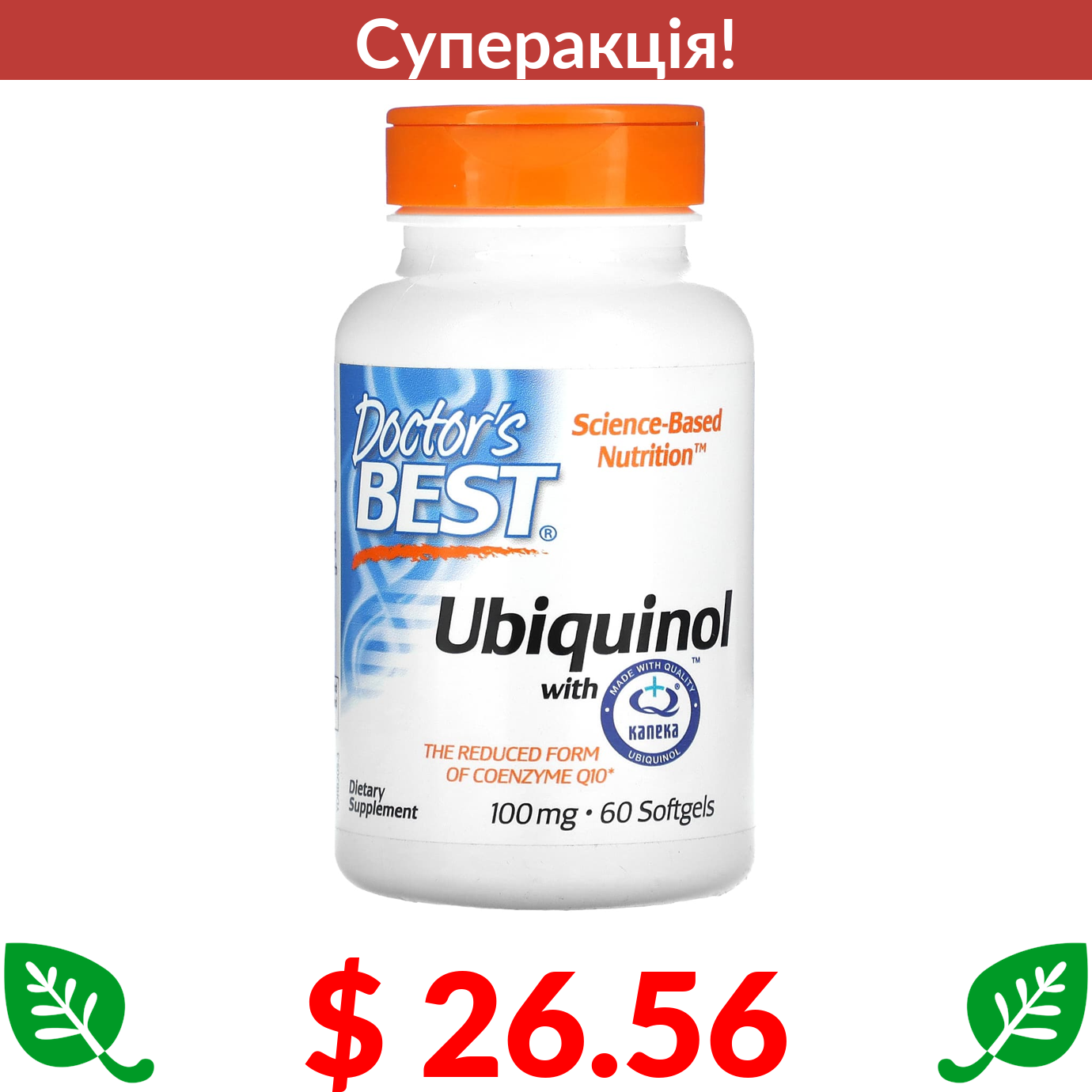 $ 26.56 Doctor's Best, убіхінол з Kaneka, 100 мг, 60 капсул