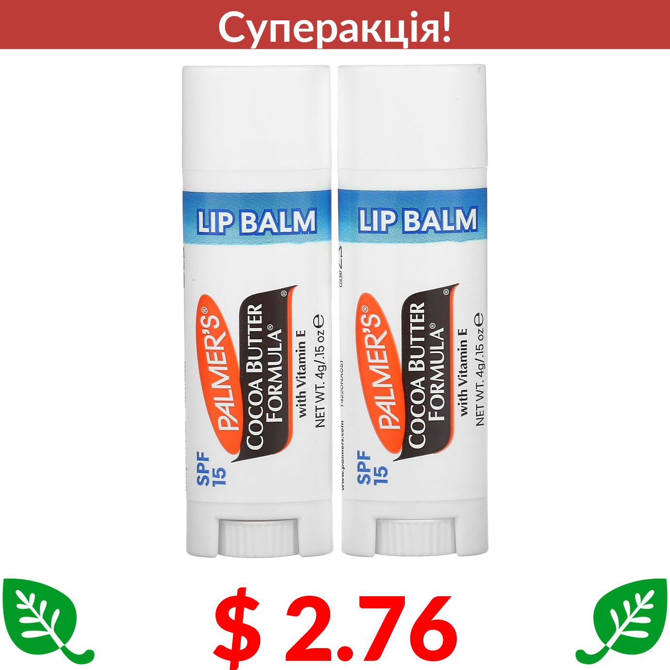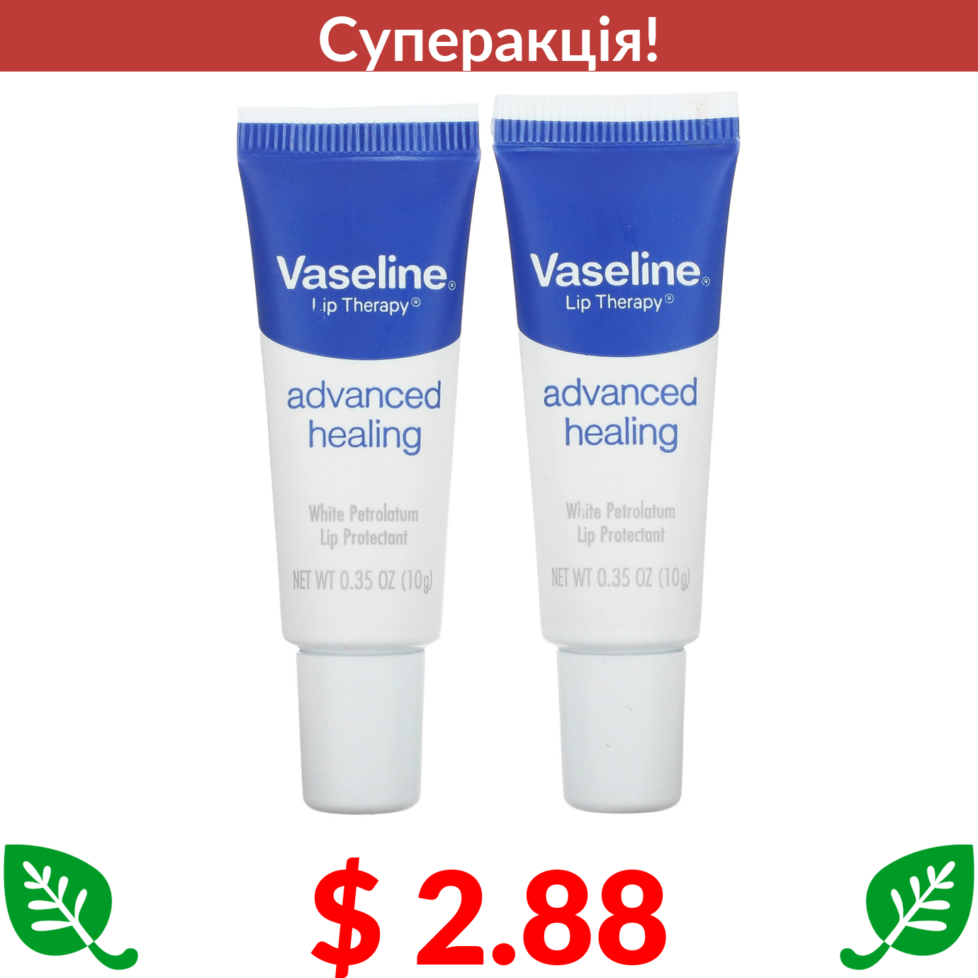 $ 2.88 Vaseline, Lip Therapy, Advanced Healing, 2 тюбики по 0,35 унції (10 г) кожен