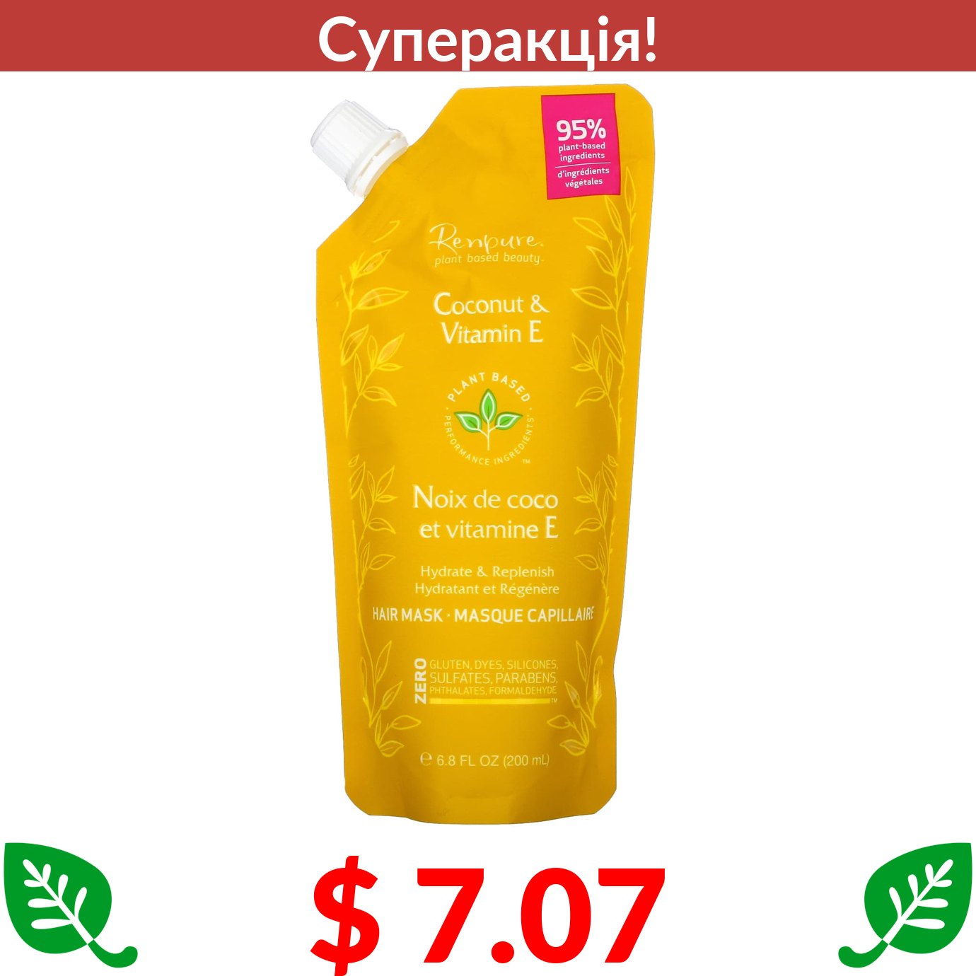 $ 7.07 Renpure, маска для волосся з кокосом і вітаміном Е, 6,8 рідких унцій (200 мл)