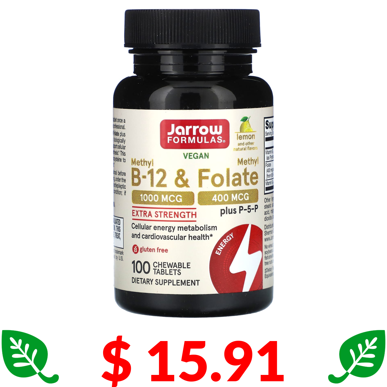 $ 15.91 Jarrow Formulas, метил В12 і метилфолат, лимон, 100 жувальних таблеток