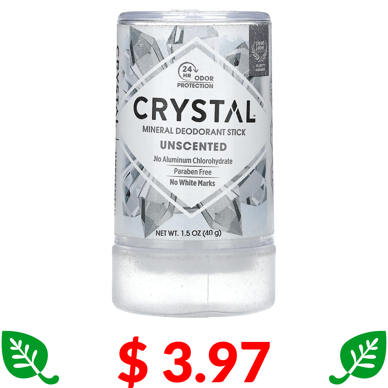 $ 3.97 Crystal Body Deodorant, мінеральний дезодорант-стік, без запаху, 40 г (1,5 унції)