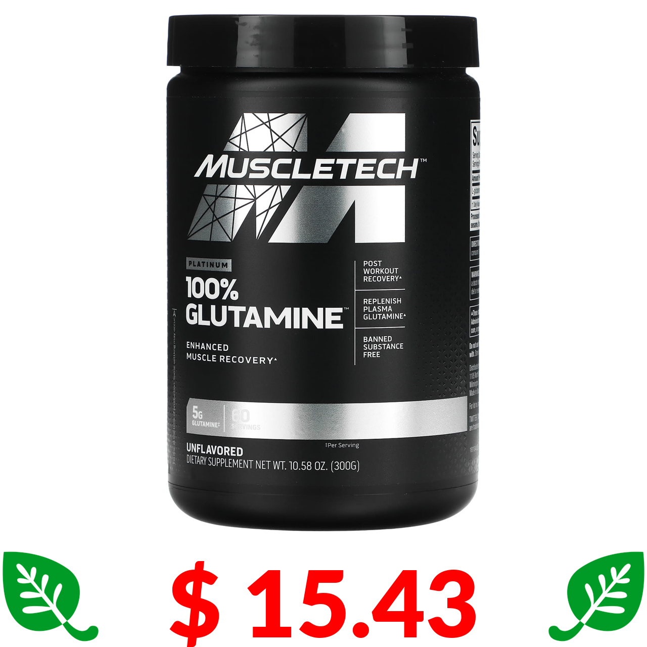 $ 15.43 MuscleTech, Platinum 100% Glutamine, глютамін, без смакових добавок, 300 г (10,58 унції)