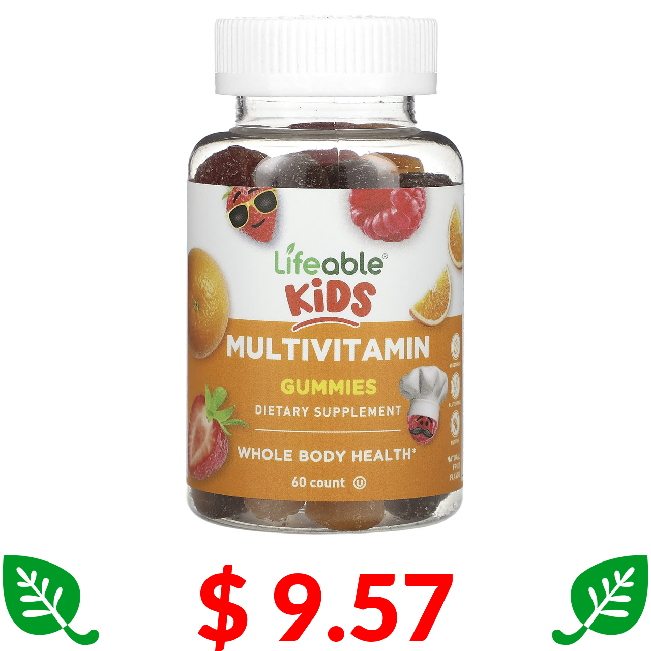 $ 9.57 Lifeable, Kids Multivitamin Gummies, Natural Fruit, 60 Gummies