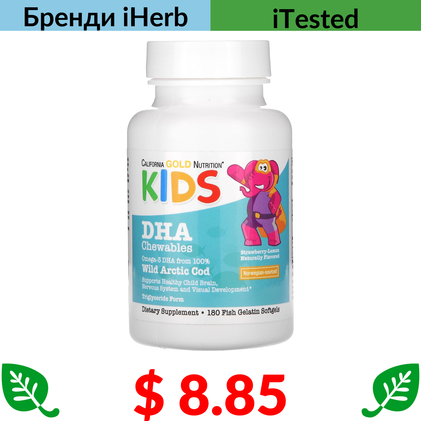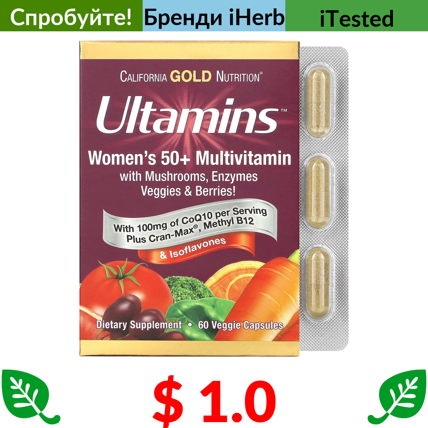 $ 7.53 California Gold Nutrition, вітаміни D3 й K2, 60 рослинних капсул