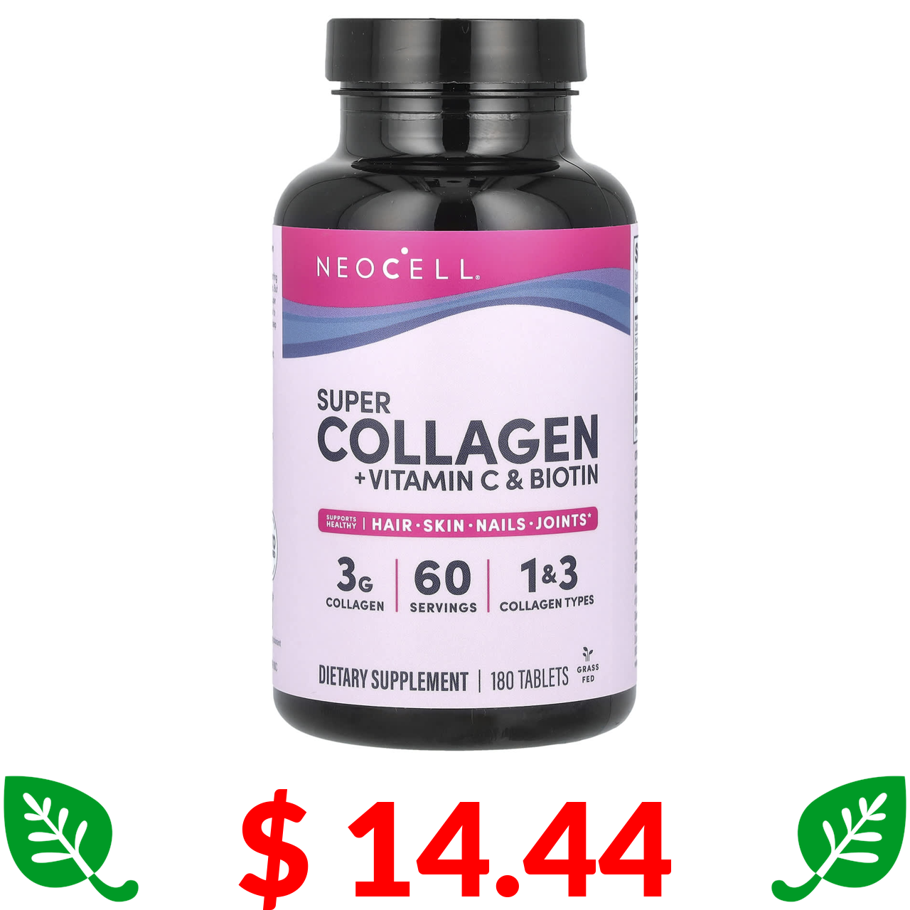 $ 14.44 NeoCell, Супер колаген + вітамін С і біотин, 180 таблеток