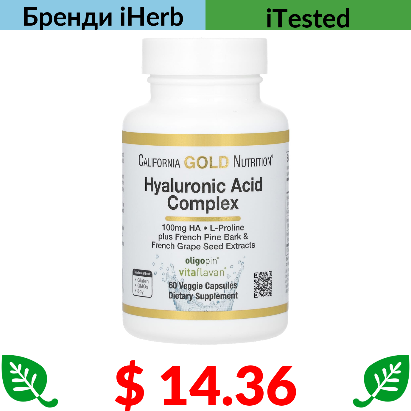 $ 14.36 California Gold Nutrition, комплекс із гіалуроновою кислотою, 60 рослинних капсул