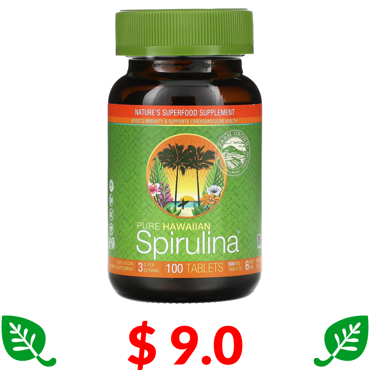 $ 9.0 Nutrex Hawaii, Pure Hawaiian Spirulina, чиста гавайська спіруліна, 100 таблеток