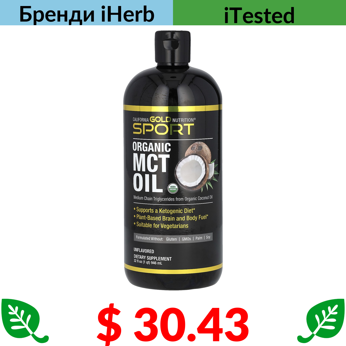 $ 30.43 California Gold Nutrition, Sport, органічна олія з MCT, 946 мл (32 рідк. унції)