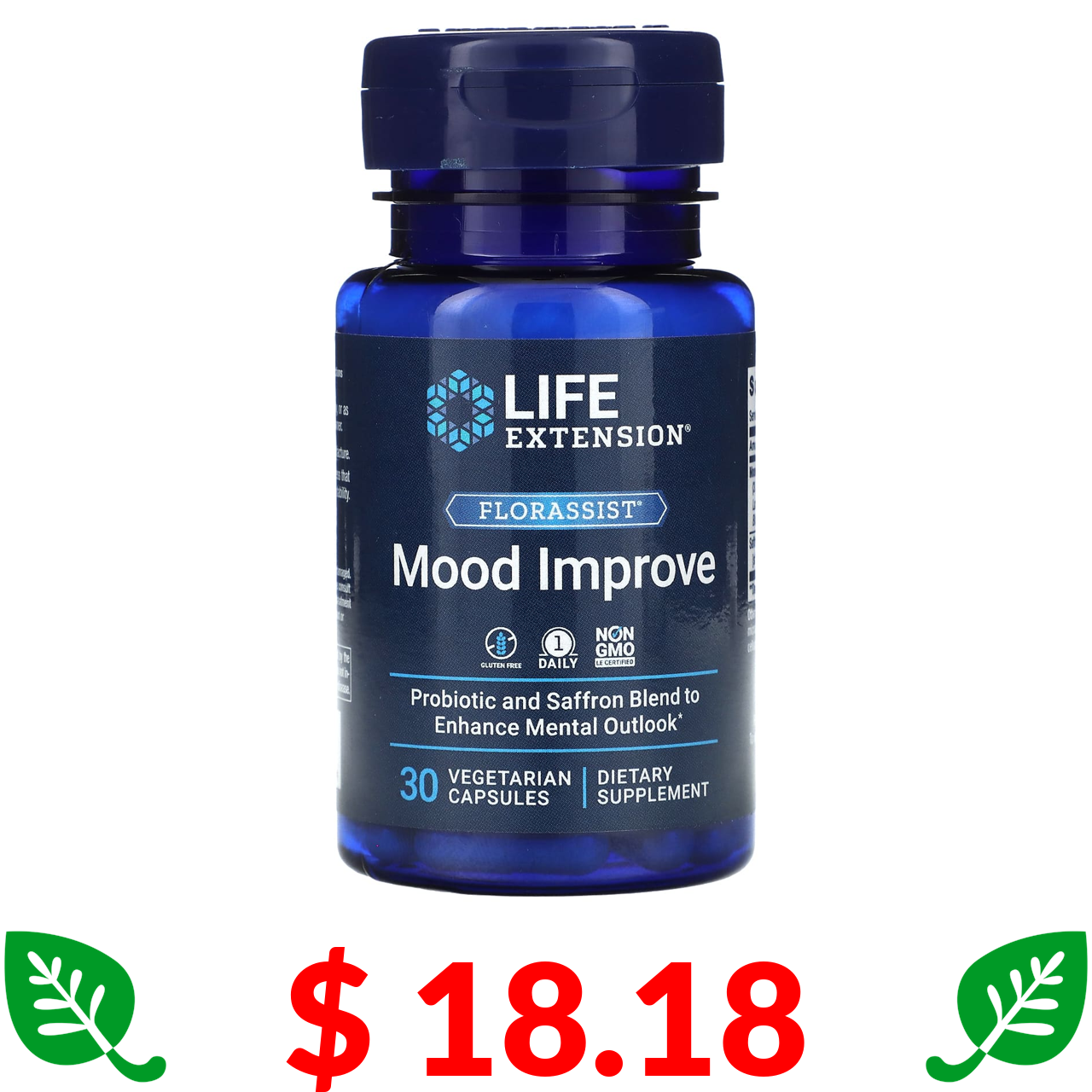 $ 18.18 Life Extension, FLORASSIST, добавка для покращення настрою, 30 вегетаріанських капсул