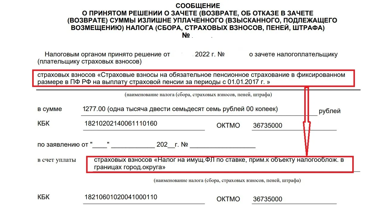 с зачет переплаты