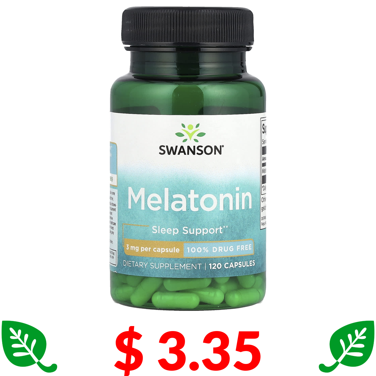$ 3.35 Swanson, мелатонін, 3 мг, 120 капсул