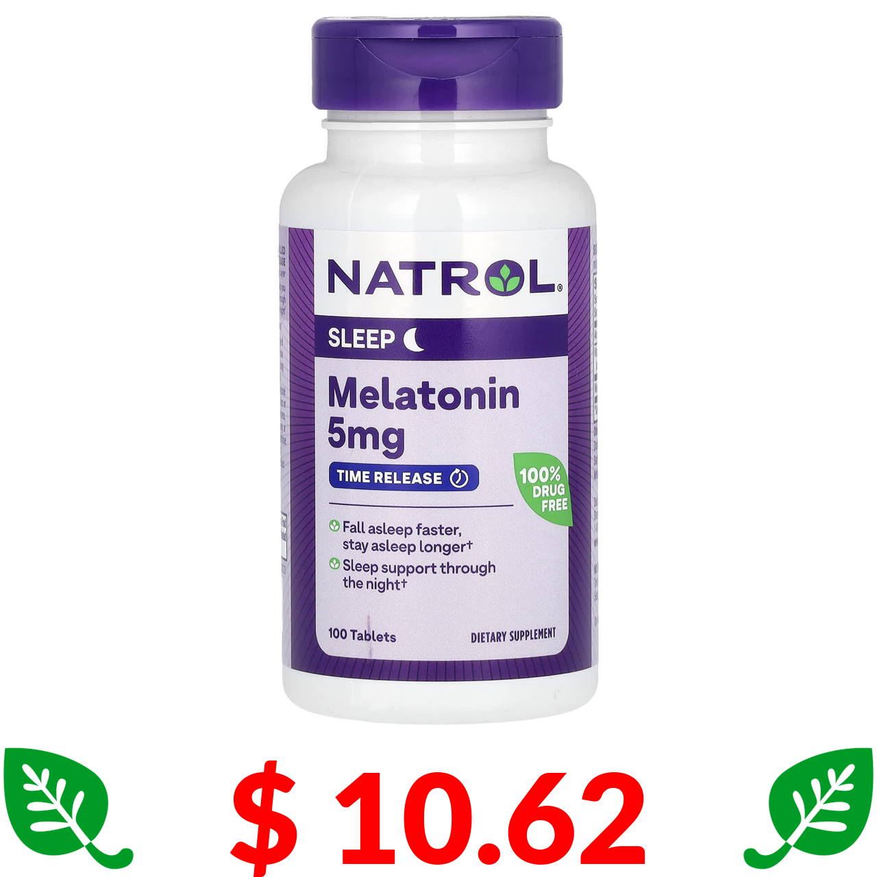 $ 10.62 Natrol, мелатонін із повільним вивільненням, 5 мг, 100 таблеток