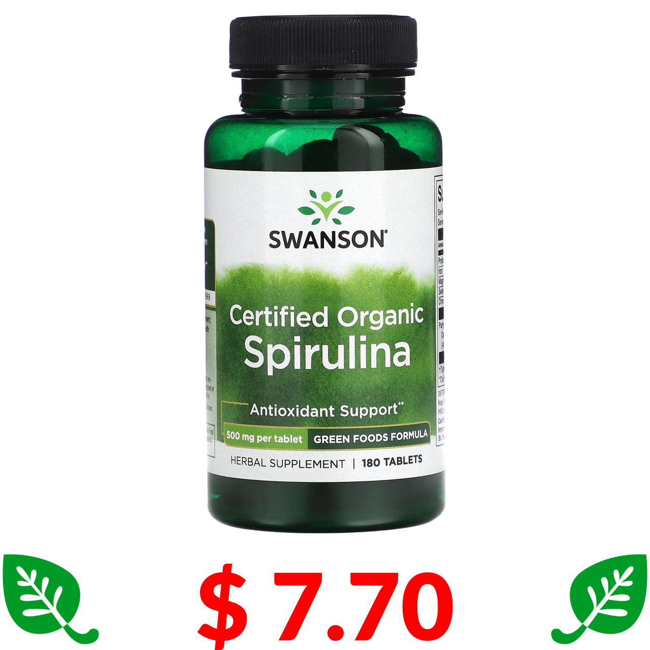 $ 7.70 Swanson, сертифікована органічна спіруліна, 500 мг, 180 таблеток