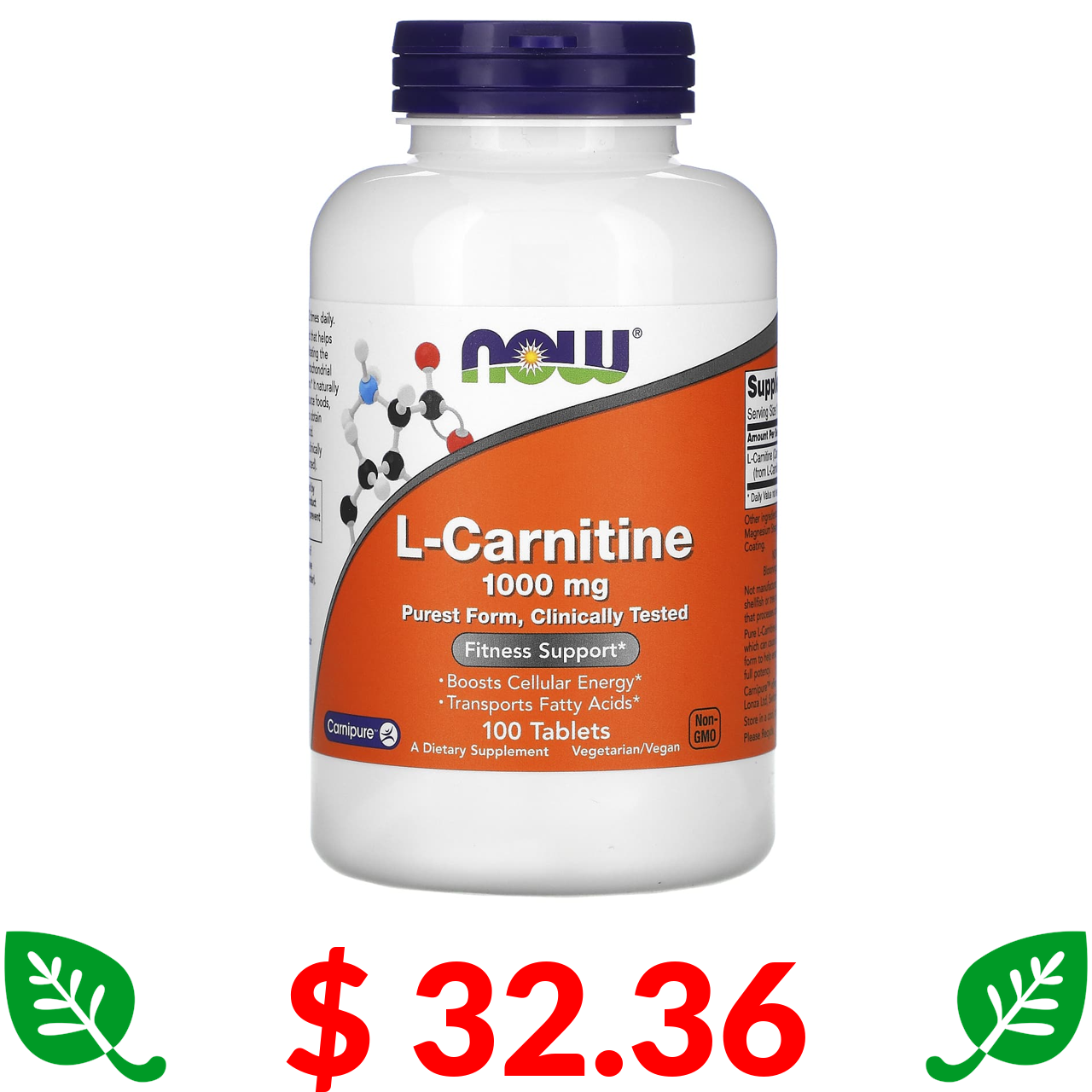 $ 32.36 Now Foods, L-карнітин, 1000 мг, 100 таблеток